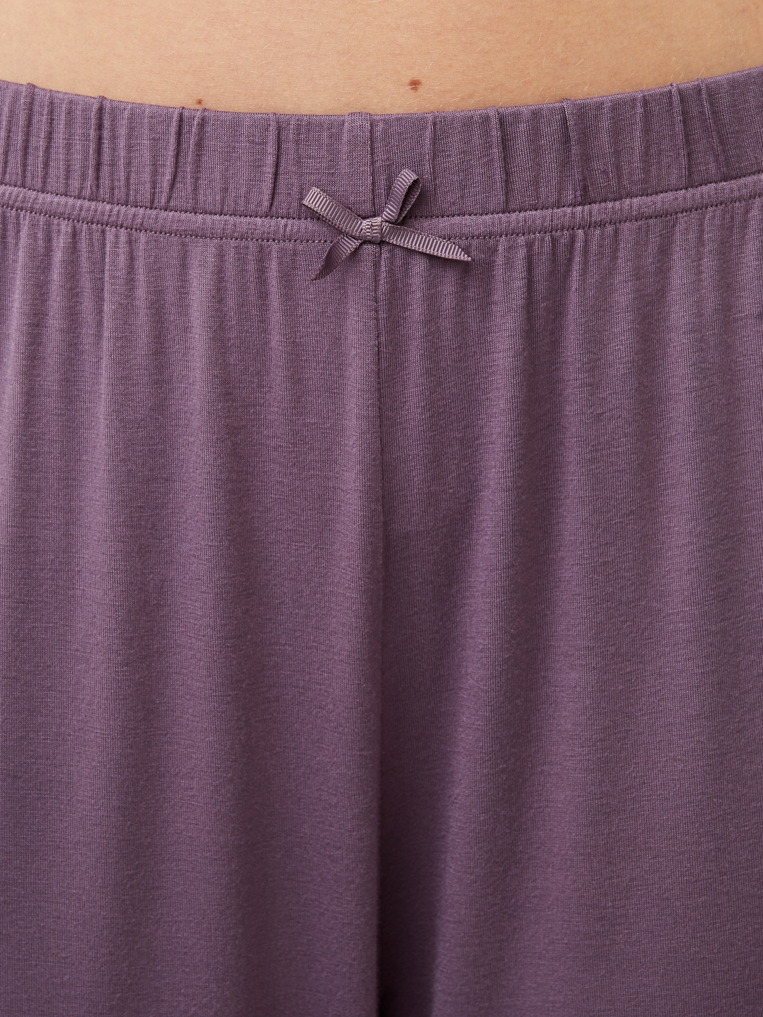 Mjúk teygja í mitti með lítilli slaufu að miðju framan.
