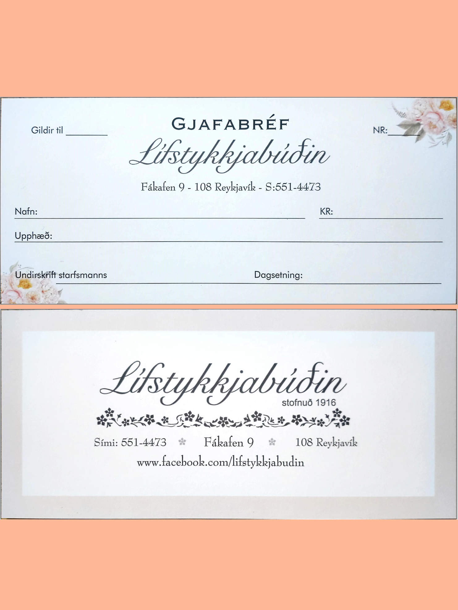 Gjafabréf Lífstykkjabúðarinnar er góð gjöf sem gleður. Gjafabréfið kemur á fallegum pappír og umslagi.