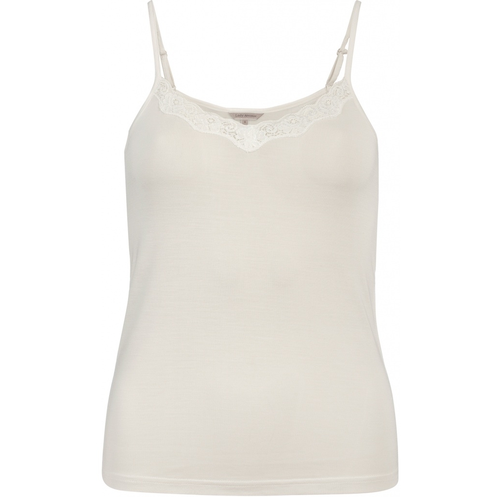 Beinhvítur hlýrabolur úr prjónuðu 100% gæða silki fá Lady Avenue.