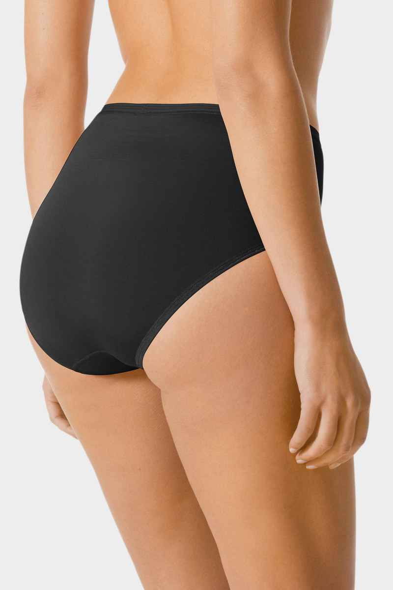 Svartar, mittisháar uppskornar nærbuxur úr bómull frá Mey.