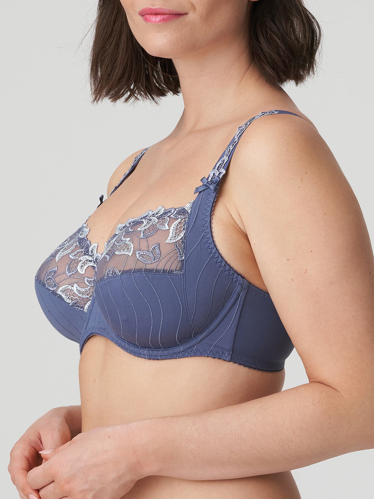 Deauville, full-cup haldarinn frá Prima Donna í dásamlega fallegum nætubláum lit og blúnda með silfurbláum ísaum.
