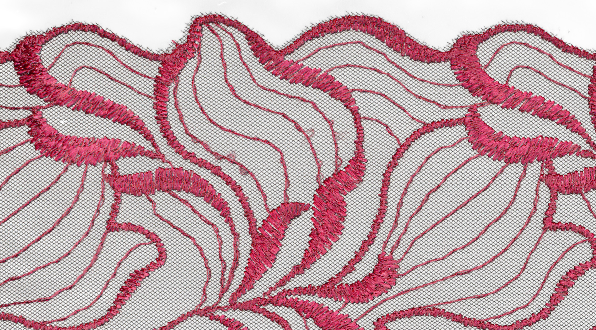 Svartur með rauðri blúndu í blómamynstri.