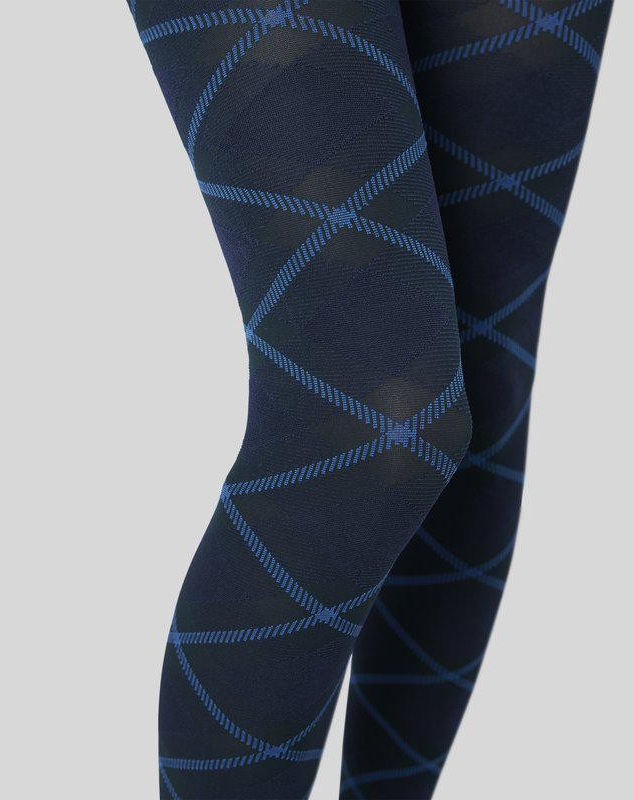 Dökkbláar með dökkgrænum og ljósbláum köflum.